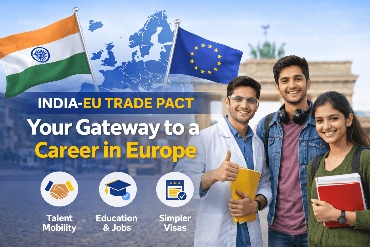 For young Indian students and professionals dreaming of building a career abroad, the recent India-EU Trade Pact is more than just a political headline, it’s a game changer. This agreement is creating real, tangible pathways for talented individuals to thrive in Europe. This article breaks down the five most impactful ways this pact could shape your future.